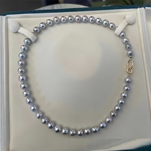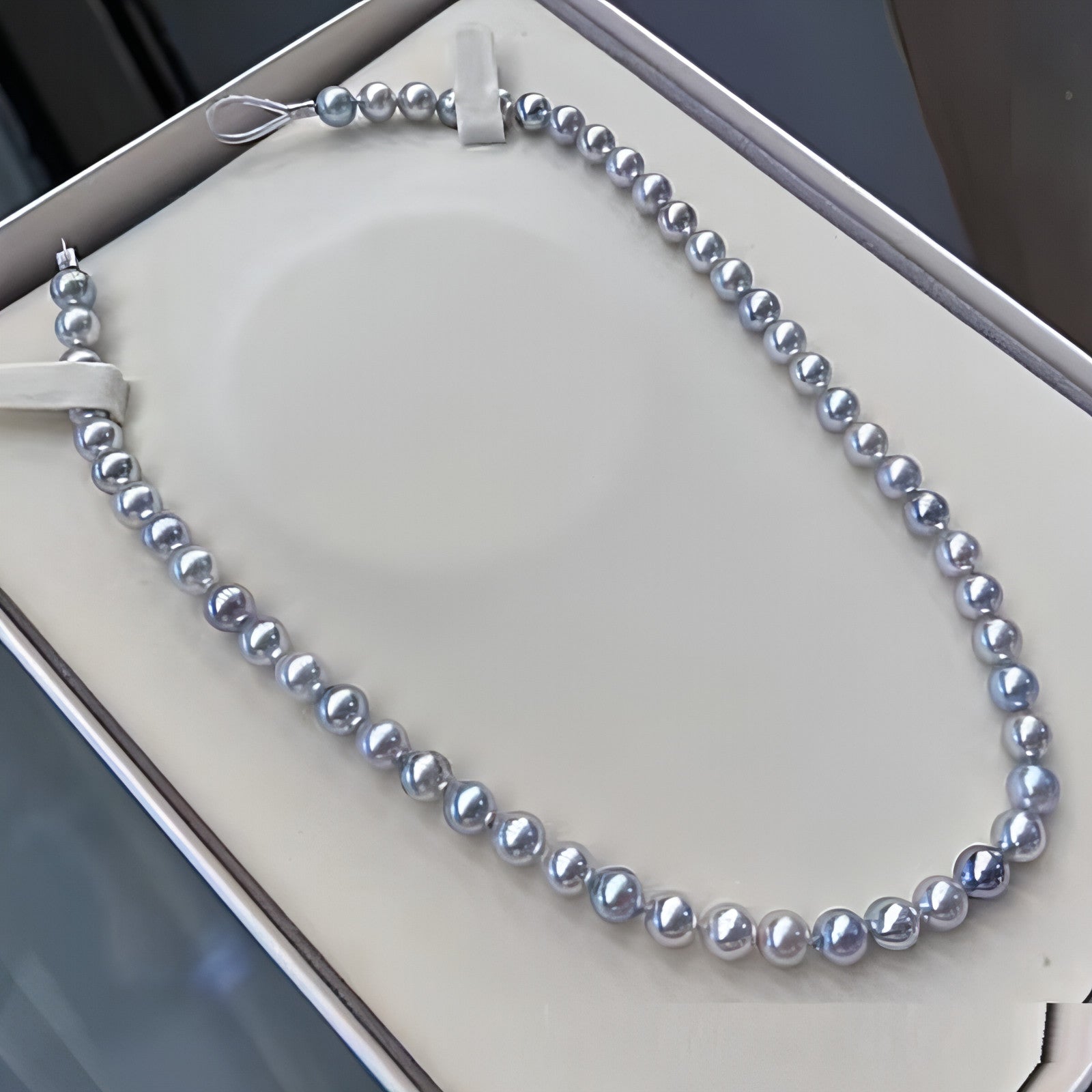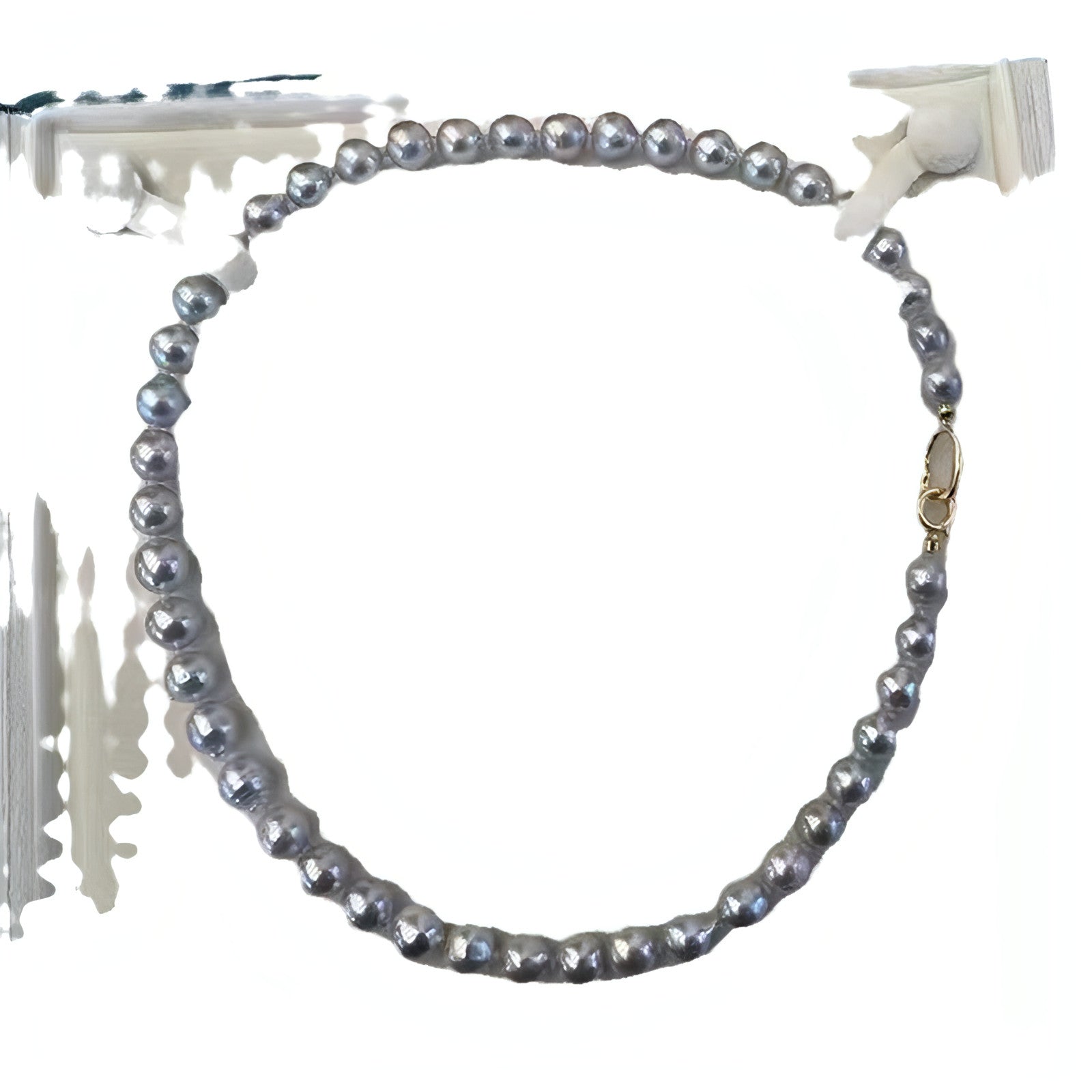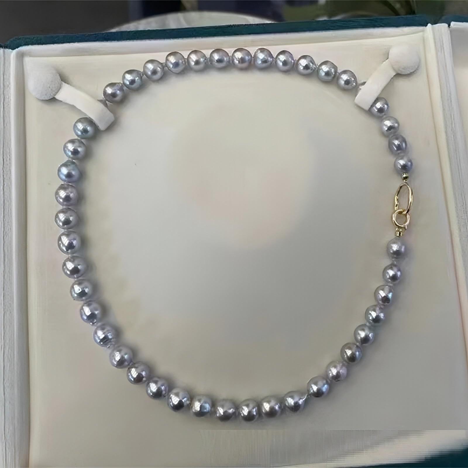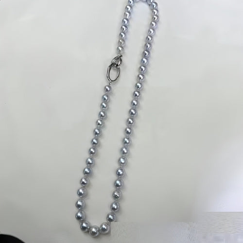 8-9MM Baroque Silver Blue Gray Aurora Sea Pearls Necklace