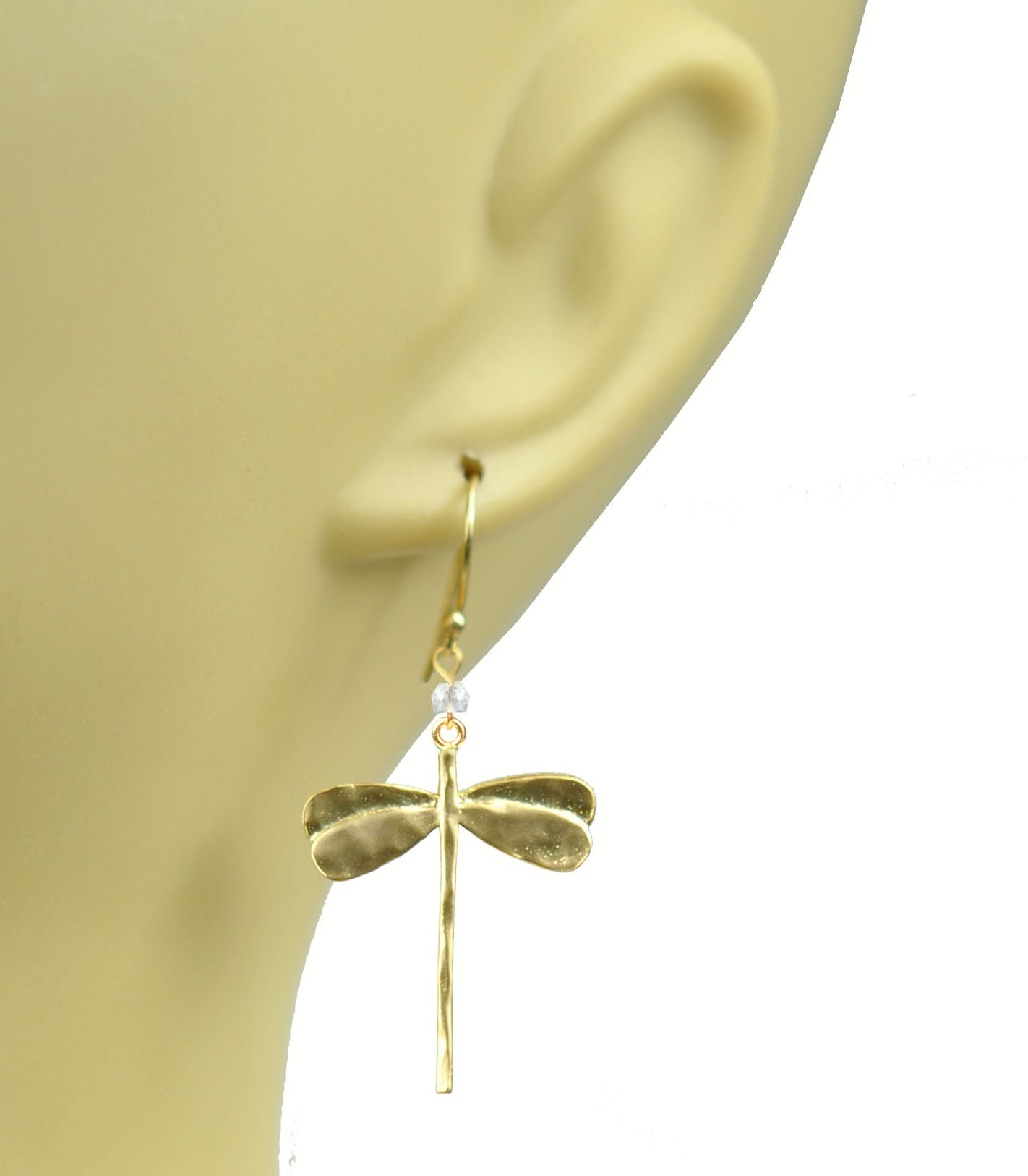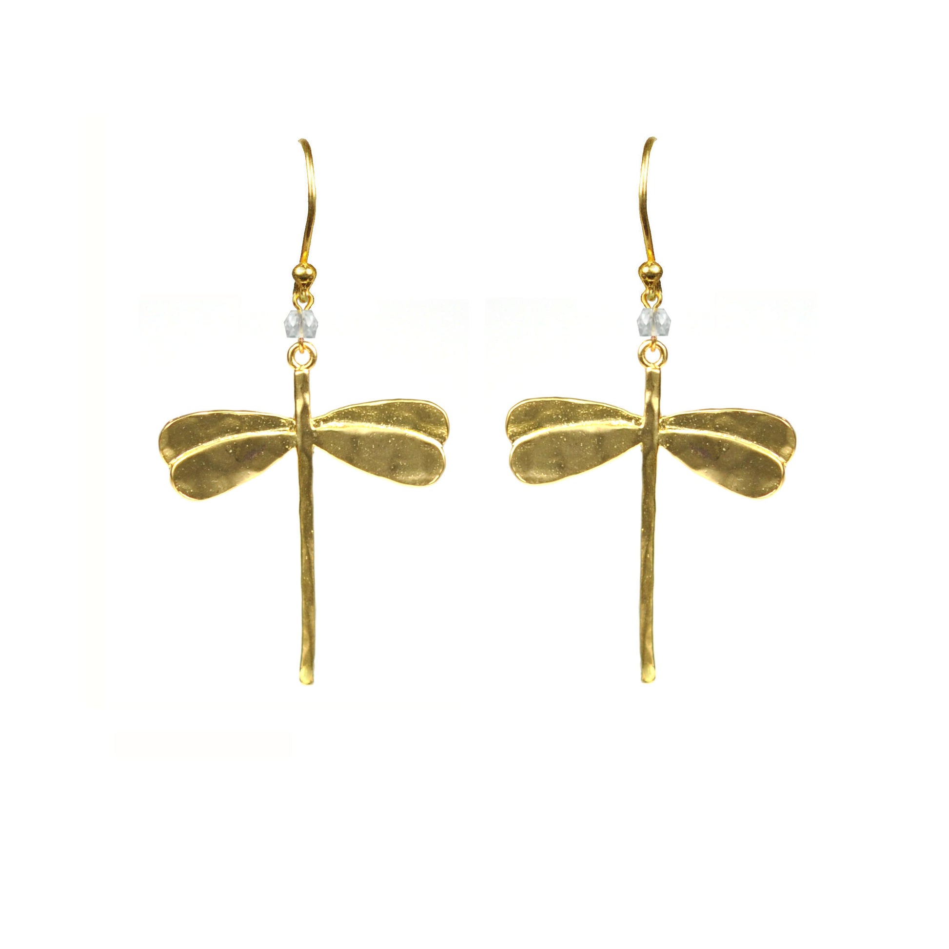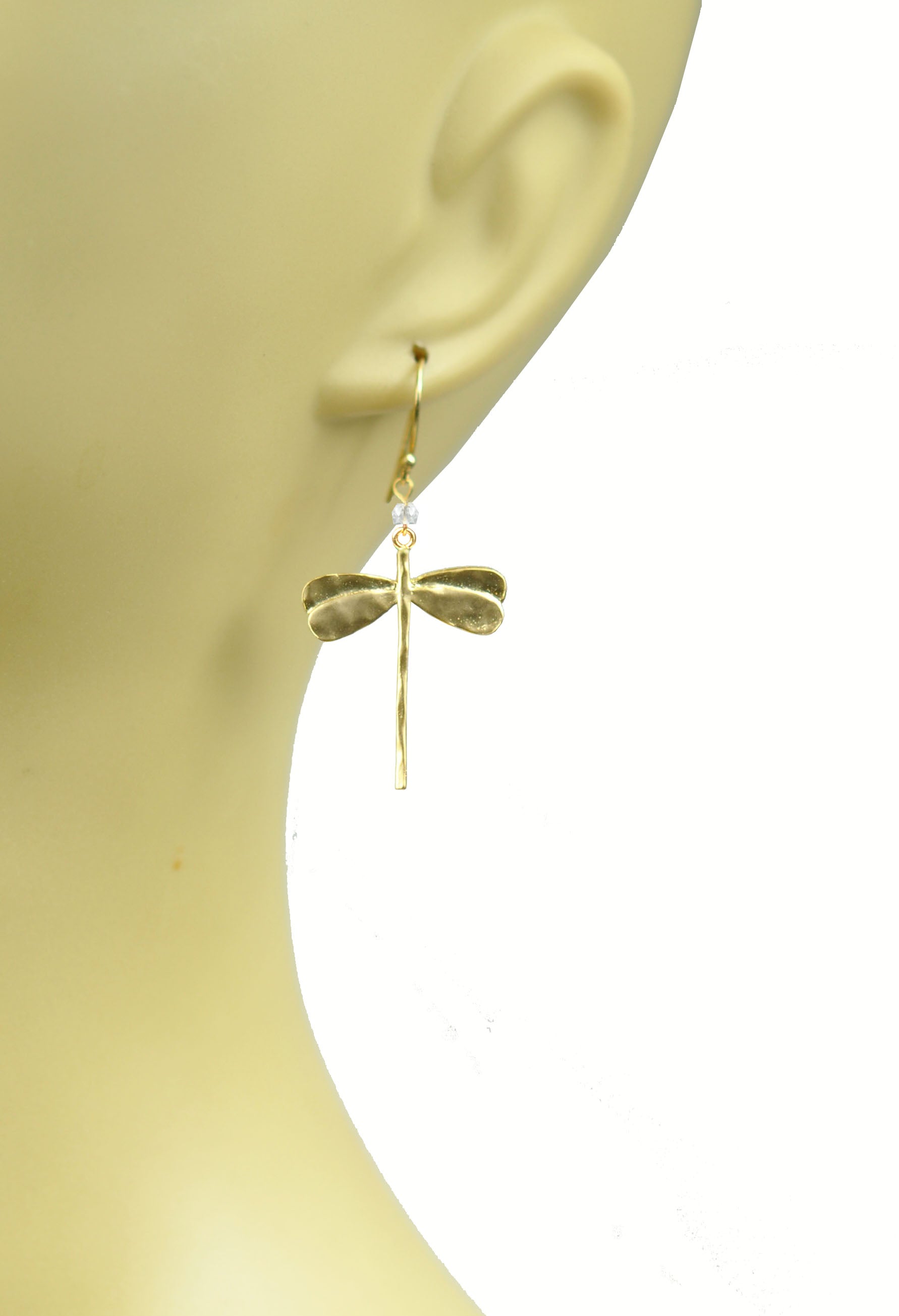 A poetic ode to flight and finesse, the Astra Wings earrings shimmer with the gentle clarity of white topaz, delicately set in a dragonfly silhouette. Each pair captures the quiet strength and graceful movement of nature's most ethereal creature. Lightweight and luminous, these earrings add an airy sophistication to any ensemble, day or night. Wear them as a symbol of renewal, transformation, and effortless charm.