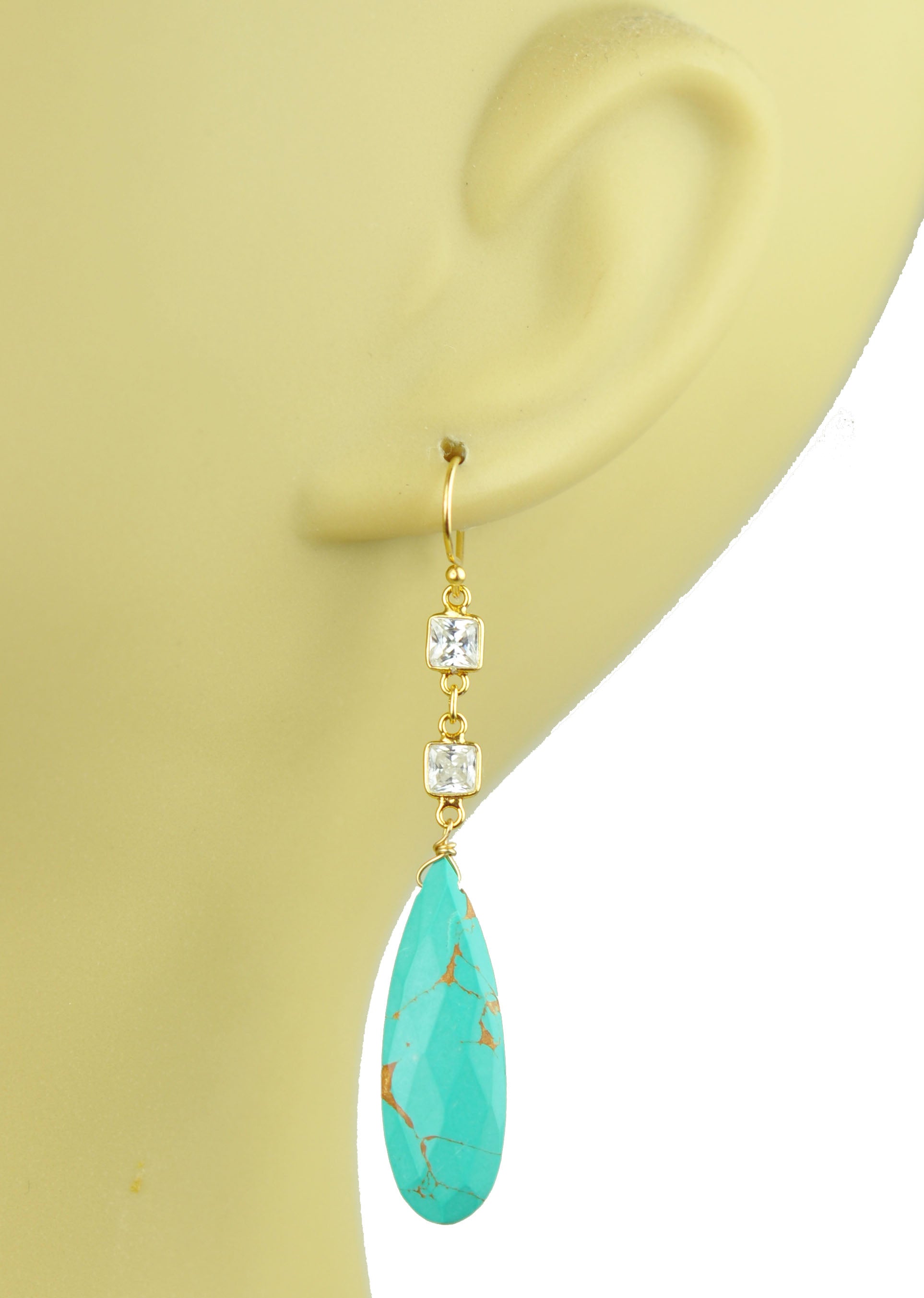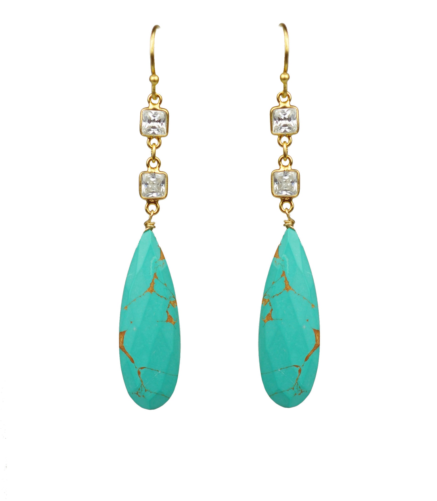 The Indira earrings feature luminous white topaz paired with vibrant turquoise drops - a striking combination that turns heads and holds attention. Lightweight yet bold, their elongated silhouette adds regal sophistication to both casual looks and evening wear. Set in fine detailing and made to move with you, these earrings are a celebration of modern royalty.