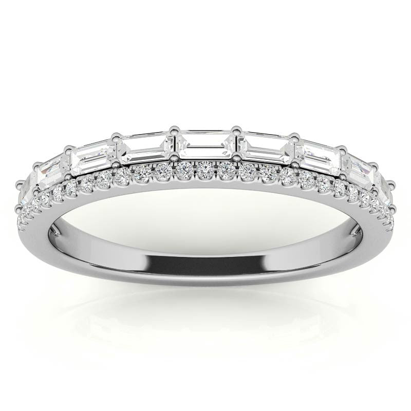 Each ring undergoes meticulous inspection and craftsmanship, ensuring the highest quality and excellence. Elevate your style with this 1.6 CT Round & Emerald Shape Moissanite Ring in 14k White Gold and make a statement that lasts a lifetime.